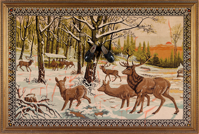 Técnica mixta, collage, tapiz, 105 x 156 cm